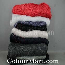 Looking for a bit of excitement? Then here it is, a mystery bag! 500g of an excellent assortment of sparkle yarns - some cashmere, some merino, but all with lurex for a bit of added glamour. You can get any colour, any weight and any amount of yardage but these will not be small scrappy bits but usable flops--it's all an exciting mystery! What we can tell you is that the yarn comes off cones and what you get is completely random. Note the picture is just an example, not what you will get :-)
